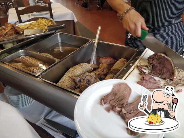 Cucina tradizionale bolognese: Carrello di salumi, primi di pasta fresca e specialità come la gramigna con salsiccia. Carrello dei bolliti, arrosti e carni alla griglia (cotte sulla brace). Dolci di produzione propria e frutta, il tutto accompagnato da una vasta scelta di vini tipici.